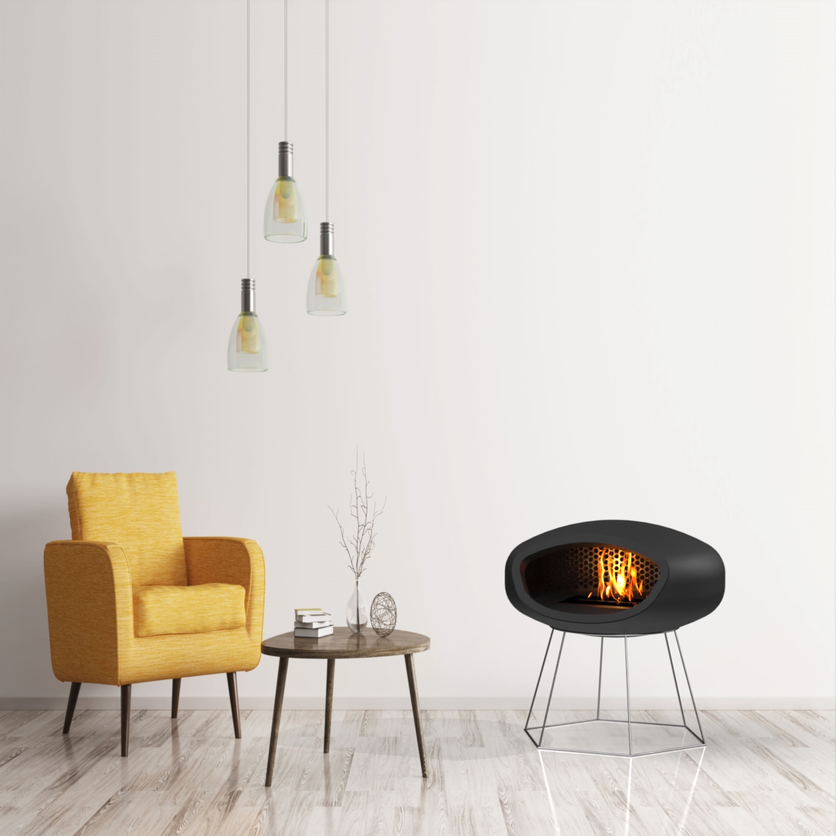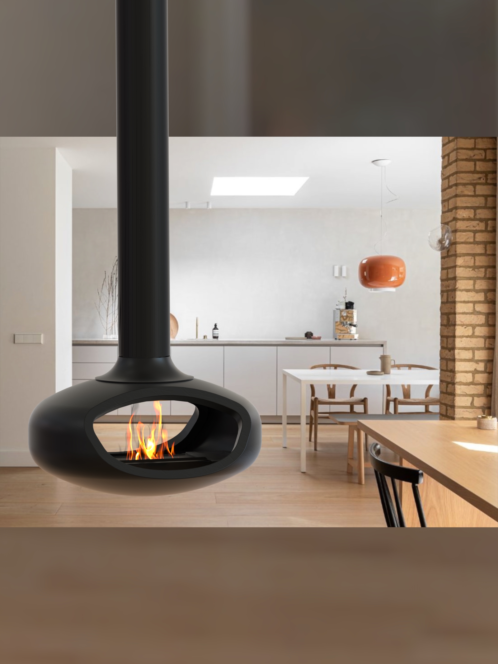 The Biobob uses clean burning bioethanol and so does not require a flue. This makes it ideal for those situations where you want the design impact of a suspended fireplace but aren’t able to install a traditional flue to the outside.