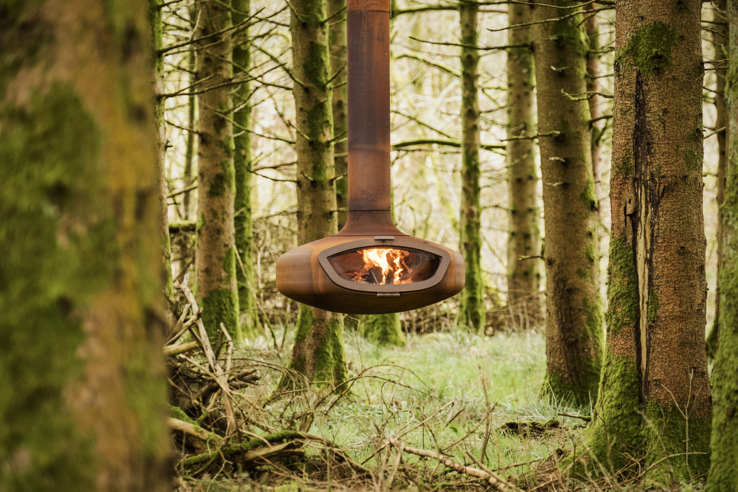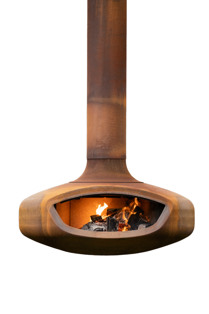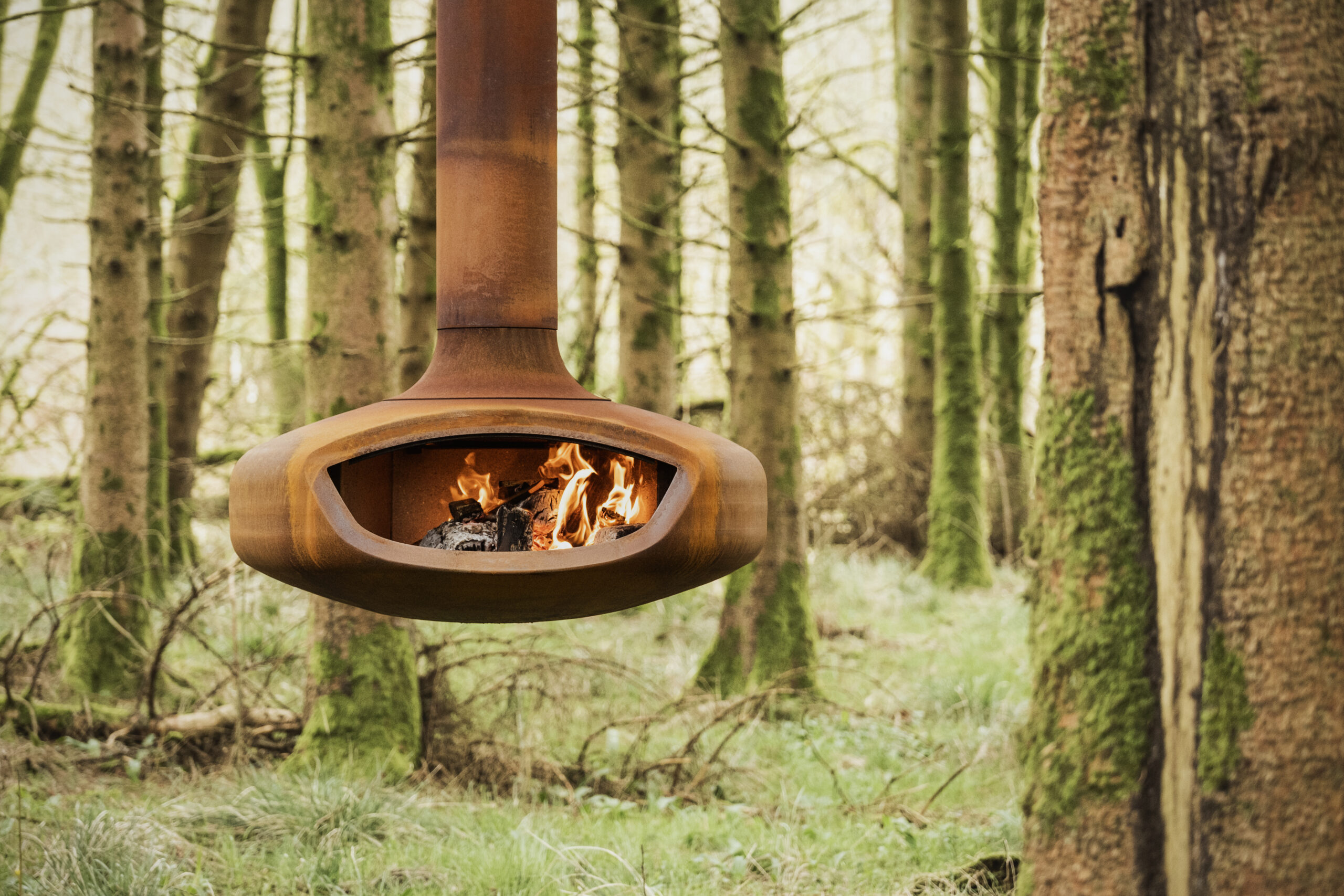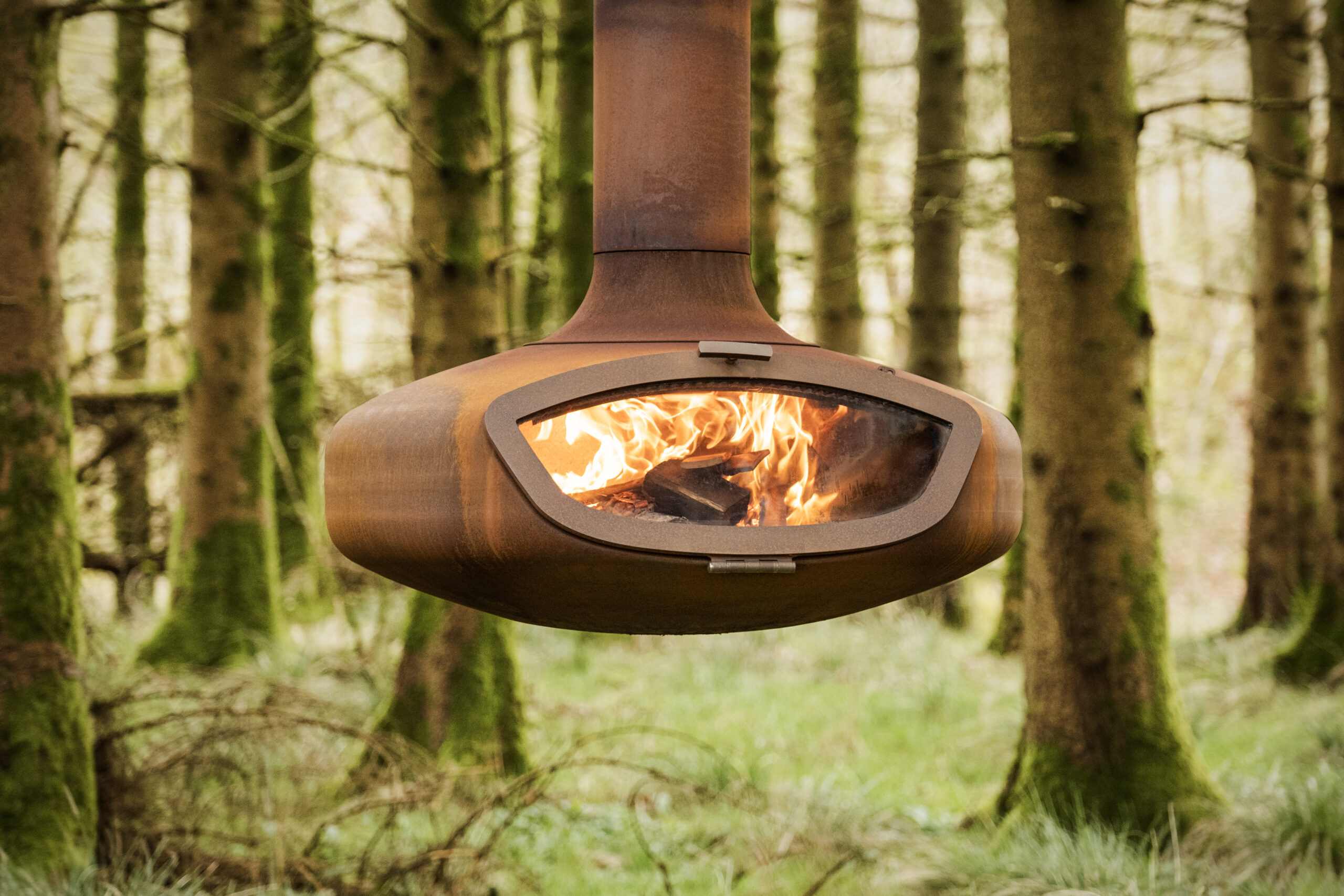 The FireBob Outdoor brings the same iconic, handcrafted quality of our beloved indoor wood burner to the open air — now forged in weathering steel for a living finish that deepens from warm bronze to a rich, rusty red over time. At 90cm in diameter, it makes a dramatic centrepiece whether suspended beneath a porch, veranda, or mounted on a bespoke fabricated frame — each installation finished with custom-length flue and made-to-measure fixing brackets. Available with or without a front door, the FireBob Outdoor adapts to your setting: we recommend the doored version where the fire is positioned above a combustible floor. Like everything we make at Firemaker, it is built in our Scottish Borders workshop to last a lifetime outdoors. They rotate too!